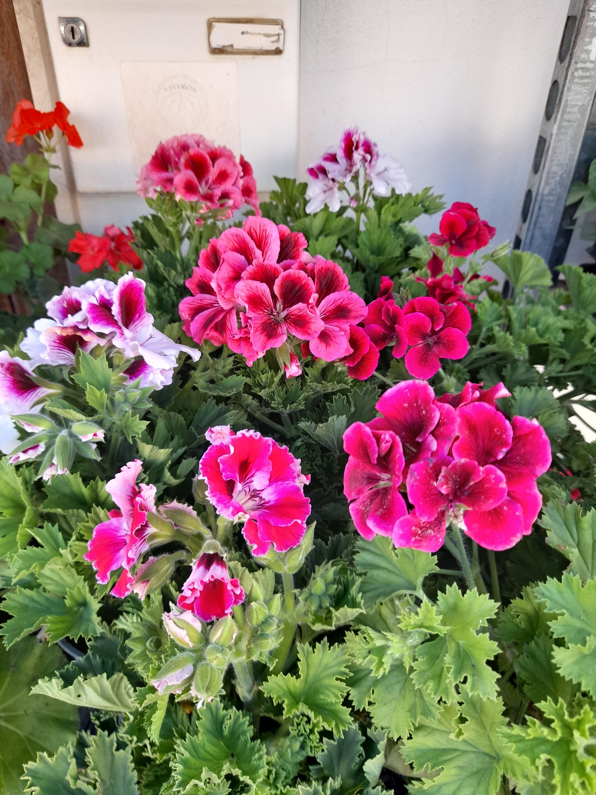 Potunias, geraneos, gitanillas, pelargonium grandiflora, etc...