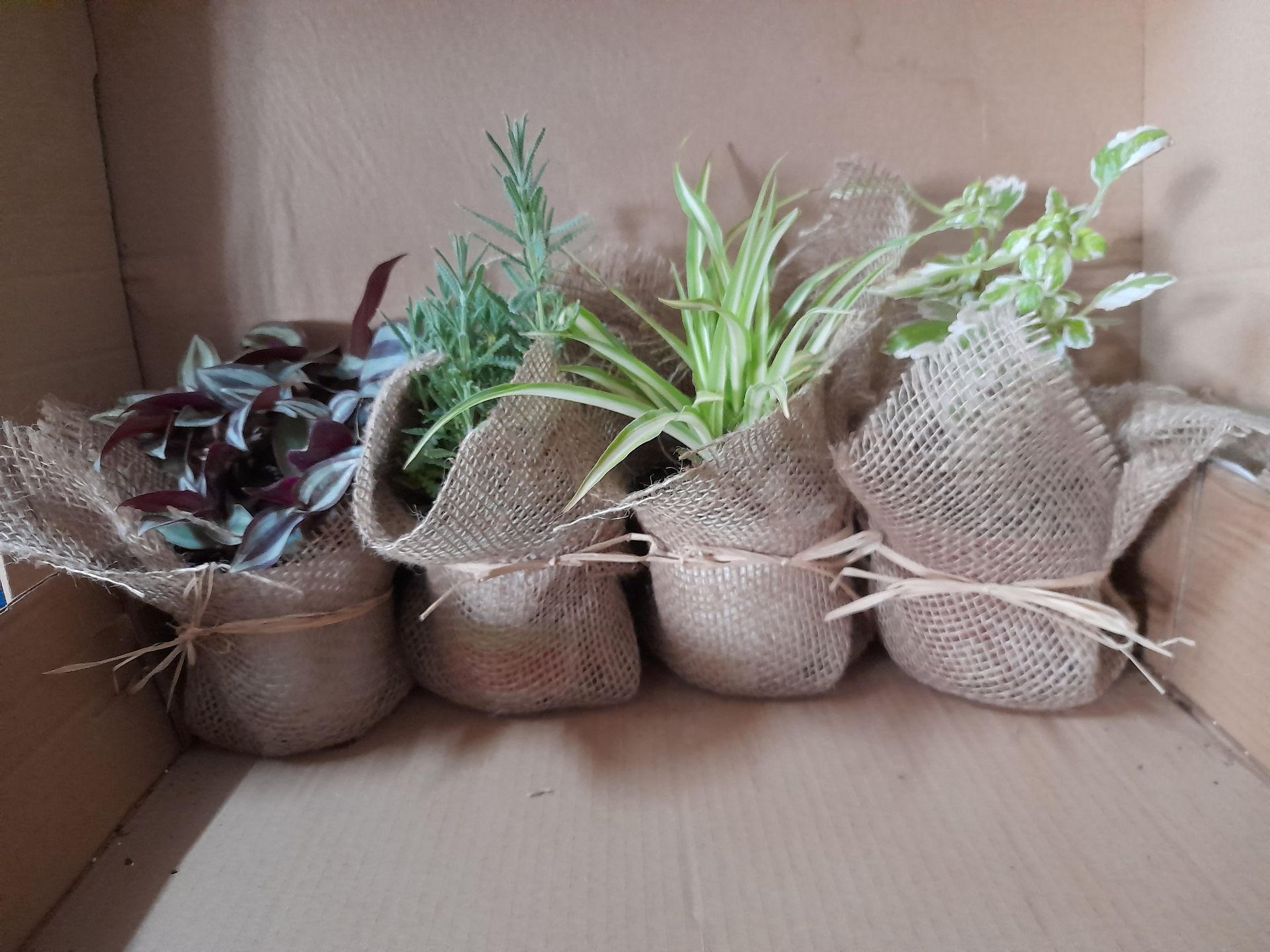 Planta de olivo con cubre maceta tela de yute...........1,95€/unidad.